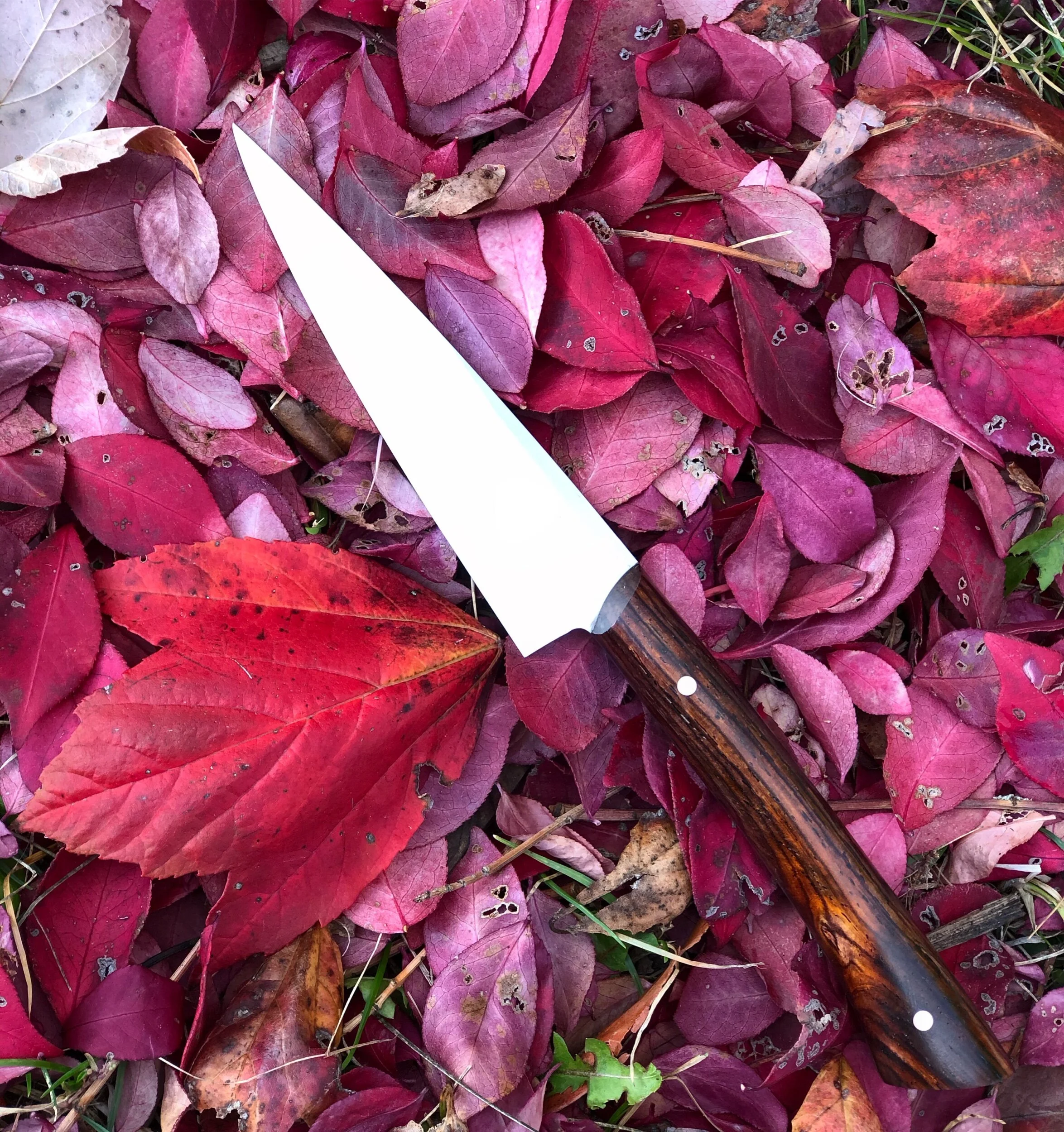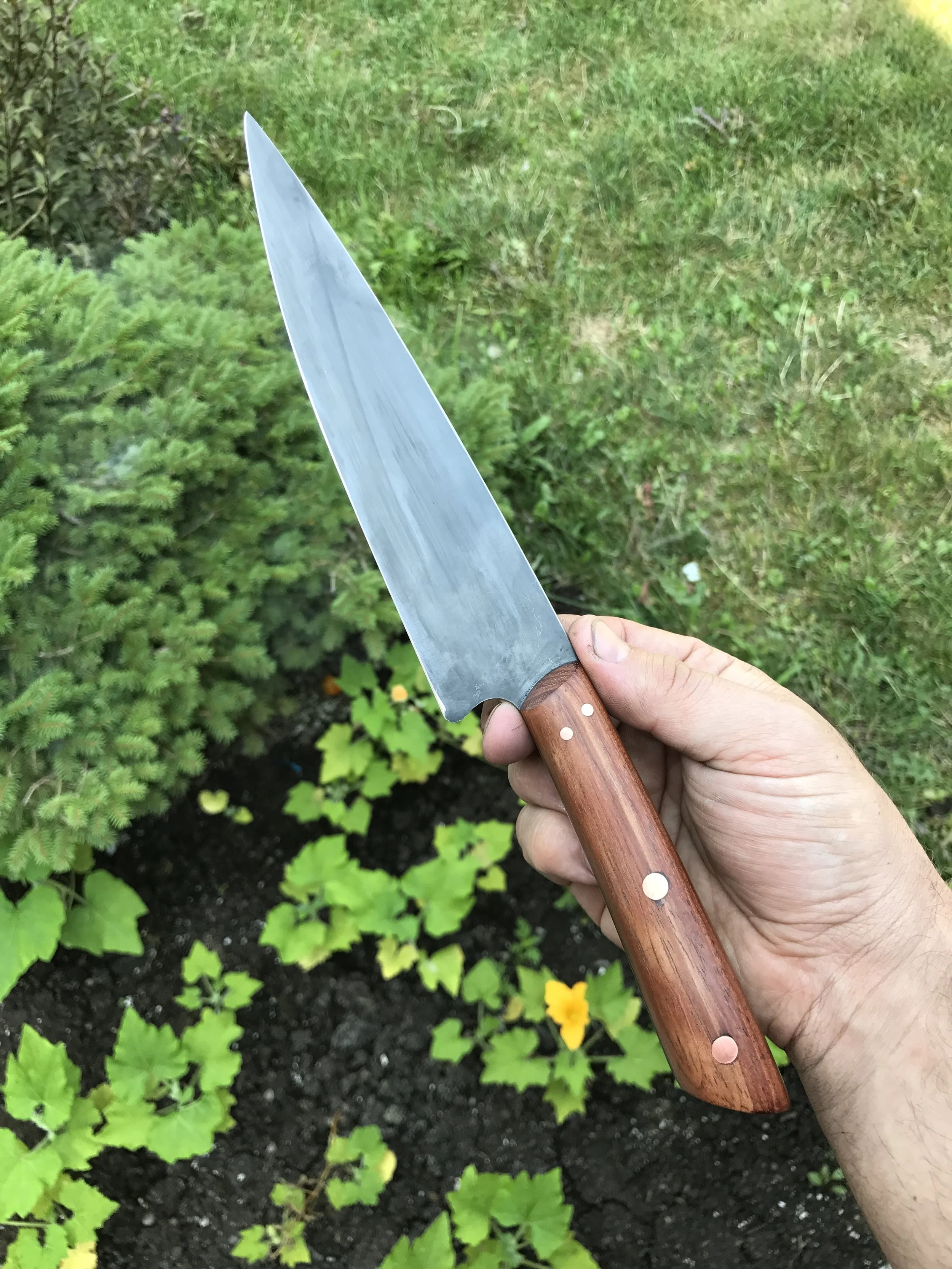 We use use a variety of high carbon, and stain resistant alloys, as well as pattern welded steels for that extra unique look for our kitchen knives. We love the natural beauty of wood, but can also source and make laminates for a unique, yet functional look.